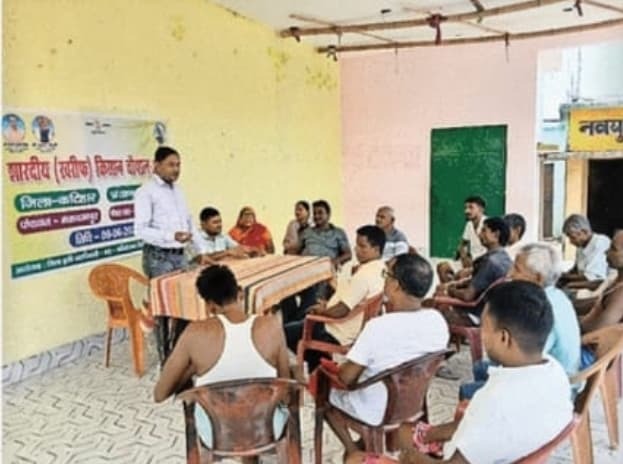 कोढ़ा.खरीफ फसल सत्र के तहत मखदुमपुर पंचायत के पुस्तकालय परिसर में किसान चौपाल का आयोजन किया गया. प्रखंड सहायक तकनीकी प्रबंधक आकाश कुमार, किसान सलाहकार शशि कुमार ने किसानों को कृषि विभाग की विभिन्न योजनाओं की जानकारी दी. उन्होंने विशेष रूप से अनुदानित दर पर उपलब्ध धान एवं हैचा बीज के उठाव के लिए किसानों को प्रेरित किया. इन बीजों के उपयोग से होने वाले फसल लाभ से भी अवगत कराया. चौपाल में किसानों को कृषि यांत्रिकीकरण, राष्ट्रीय बागवानी मिशन, जैविक खेती, ड्रोन के माध्यम से फसलों पर कीटनाशक छिड़काव जैसी आधुनिक तकनीकों के बारे में विस्तार पूर्वक बताया गया. साथ ही शारदीय (सरीफ) आधारित खेती के लिए वर्मी कंपोस्ट के उत्पादन व उपयोग की महत्ता पर जोर दिया गया. इस अवसर पर मुख्य रूप से अशोक कुमार, देवकीनंदन, नवयुवक वस, मनोज मेहता, रामाकांत सिंह, मीना कुमारी, वार्ड सदस्य चंदन कुमार सहित दर्जनों किसान उपस्थित रहे.