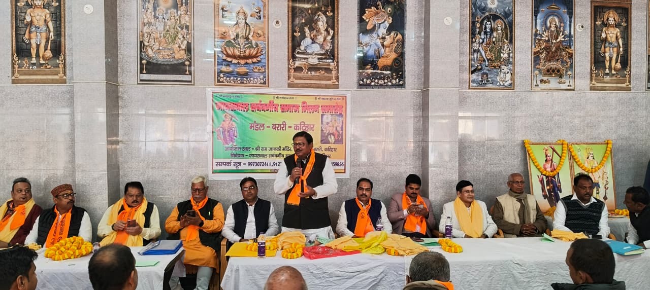 बरारी प्रखंड के श्रीराम जानकी मंदिर गुरुबाजार के प्रांगण में जयसवाल सर्ववर्गीय समाज बरारी मंडल के अध्यक्ष महेश कुमार चौधरी की अध्यक्षता में बैठक हुई. मुख्य अतिथि प्रदेश अध्यक्ष कलवार इंडिया एसोसिएशन अशोक चौधरी, उपाध्यक्ष मिथिलेश जयसवाल, अखिल भारतीय कलवार समाज अध्यक्ष अशोक चौधरी, उपाध्यक्ष अशोक कुमार चौधरी, जिलाध्यक्ष मुकेश कुमार चौधरी, पूर्व विधायक विभाष चन्द्र चौधरी व विधानसभा अध्यक्ष दीपक जयसवाल ने संबोधन में कहा कि संगठनात्मक मजबूती के साथ समाज के पीड़ित, प्रताड़ित एवं अकुशल लोगों का उत्थान व विकास करना प्राथमिकता होगी. सरकार की योजना का लाभ समाज के अंतिम लोगों तक पहुंचाना है. जयसवाल समाज के वरीय व संगठन को धारदार बनाने वाले सक्रिय लोगों को सम्मानित किया. विधायक विजय सिंह को भी सम्मानित किया. जीतेन्द्र जायसवाल, राजेश जयसवाल, छोटू चौधरी, आनंद चौधरी, बिनोद चौधरी, धीरज चौधरी, विकास चौधरी, संजय चौधरी, अरुण चौधरी, गौतम भगत, अभय जयसवाल, अमित चौधरी, विवक जयसवाल, संजय भगत, छोटु भगत, रणवीर , शांति जयसवाल, सरिता जयसवाल, स्वामीनाथ जयसवाल सहित जयसवाल समाज मौजूद रहे. .