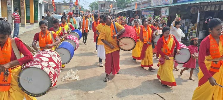 – 72 घंटे हरिनाम संकीर्तन की हुई शुरुआत कटिहार हफलागंज शिव मंदिर चौक में आहूत महायज्ञ शुभारंभ के अवसर पर विभिन्न तरह की झांकियां के साथ विशाल शोभायात्रा सोमवार को निकाली गयी. शोभा यात्रा कई मायनों में अविस्मरणीय और ऐतिहासिक रही. लगभग एक किलोमीटर लंबाई में भगवाधारी श्रद्धालुओं के कारवां के साथ कहीं अश्व जुटे हुए आधुनिक रथों पर प्रभु की विभिन्न छवियों का स्वांग धारण किए कलाकारों की जीवंत छवि दिखाई पड़ी तो कहीं बंगाल के मादल और मृदंग के साथ संगीत का प्रदर्शन करती महिला कलाकार दिखी. पारंपरिक बैंड बाजे के साथ भक्ति गीतों पर समा बांधते बैंड के कलाकार दिखे तो कहीं महाबली या बिग हनुमान!कहीं राक्षसी पूतना तो कहीं अन्य धार्मिक चरित्रों की प्रतिकृति प्रस्तुत करते आमंत्रित कलाकार का दृश्य दिखाई दी. फारबिसगंज से आए झांकी एवं स्वांग कलाकारों ने राधा कृष्ण की प्रणय लीला को संगीत मय अंदाज में प्रस्तुत कर ऐसा समां बांध मानो वक़्त ठहर गया हो. इस ऐतिहासिक शोभा यात्रा के साथ 1101 कन्याएं सिर पर कलश धारण कर शोभायात्रा कारवां के साथ हफलागंज एवं आसपास के लगभग 05 किलोमीटर की परिधि में यात्रा तय कर पुनः यज्ञ स्थल पहुंची. इस दौरान बड़ी संख्या में महिलाएं एवं पुरुष पूरी शोभायात्रा के दौरान जय श्री राम जय हनुमान जय भोलेनाथ के जयकारे लगाते रहे. यज्ञ के दौरान भारी भीड़ और श्रद्धालुओं की संख्या को देखते हुए मुफस्सिल एवं मनसाही थाना पुलिस यज्ञ स्थल के साथ पूरे शोभायात्रा के दौरान सतर्क एवं मुस्तैद रही. पूरे कार्यक्रम की सीसीटीवी कैमरों के साथ ड्रोन कैमरों से भी निगरानी होती रही.