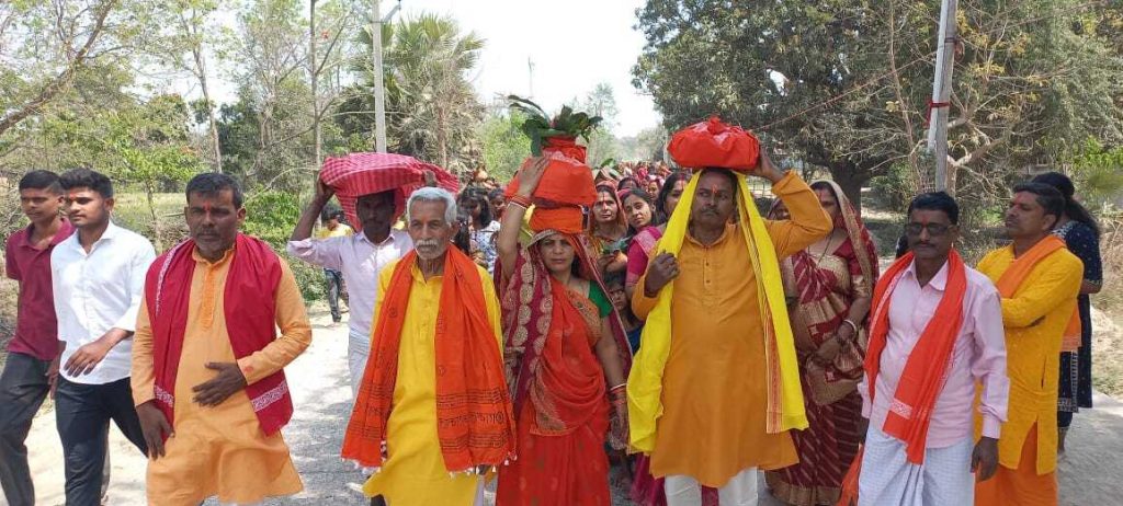 अमदाबाद प्रखंड के किशनपुर पंचायत के लक्ष्मी नारायण राम जानकी ठाकुरबाड़ी मंदिर बलुआघटी गुआगाछी से भव्य कलश शोभा यात्रा निकाली गयी. कलश शोभा यात्रा में 1151 कन्याओं ने भाग लिया. मंदिर कमेटी के स्थायी सचिव अभय कुमार सिंह ने बताया कि बुधवार को लक्ष्मी नारायण राम जानकी ठाकुर बाड़ी मंदिर परिसर में सात दिवसीय श्रीमद् भागवत कथा का आयोजन होगा. श्रीमद् भागवत कथा में वृंदावन धाम से आयी साध्वी समाहिता दीदी ने श्रीमद् भागवत कथा का वाचन किया जायेगा. श्रीमद् भागवत कथा पांच मार्च से 11 मार्च तक चलेगा. उपलक्ष्य में कलश शोभायात्रा निकाली है. कलश शोभायात्रा में 1151 श्रद्धालुक कन्याओं ने भाग ली. कलश शुभ यात्रा मंदिर परिसर से निकालकर गुआगाछी, लाल बथानी होते हुए गंगा नदी पहुंचकर कलश यात्रा में शामिल श्रद्धालुओं ने स्नान कर एवं कलश में जल भरकर बलुआघटी गांवों का भ्रमण करते हुए पुन: मंदिर परिसर में मंदिर के पुजारी द्वारा वैदिक मंत्रोच्चार के साथ कलश स्थापित किया गया. आयोजन को सफल बनाने में कमेटी के अध्यक्ष अनंत प्रकाश सिंह, उपाध्यक्ष रामकुमार सिंह, सर्वेश सिंह, जयंत कुमार सिंह, शक्ति सिंह, सौरभ सिंह, प्रभात सिंह, न्यूज सिंह, अमित सिंह, देवेश सिंह, प्रवीण भारती उन ग्रामीण जुटे थे.