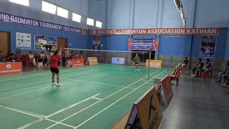 सेमीफाइनल में कटिहार, मुजफ्फरपुर, पटना, पूर्णिया ने जगह बनायी कटिहार बिहार बैडमिंटन संघ व जिला बैडमिंटन संघ कटिहार के संयुक्त तत्वाधान में शहर के महेश्वरी एकेडमी इंडोर हॉल में खेले जा रहे बिहार राज्य सीनियर रैंकिंग बैडमिंटन टूर्नामेंट के चौथे दिन सभी वर्गों के क्वार्टर फाइनल मुकाबले हो गये. पुरुष एकल के क्वार्टरफाइनल में मुजफ्फरपुर के अमृत राज ने टूर्नामेंट का सबसे बाद उलटफेर करते हुए शीर्ष वरीयता कार्तिक को 21–15, 21–14 से, तुषार कुमार सेतु वैशाली ने यशवर्धन मुजफ्फरपुर को 21–19,21–17, पटना के सक्षम वत्स ने पटना के गोपाल कुमार को 7–21,21–7,22–20, पूर्णिया के समीर राज ने औरंगाबाद के रूपेश राज को 16–21,22–2०, 21–8 से हराकर सेमीफाइनल में प्रवेश किया. महिला एकल में बक्सर की आकांशा पाण्डेय ने महिलाओं में शीर्ष वरीयता पटना की श्रीजा को 21-12,14-21,21-11, कटिहार की सौम्या भारती ने भोजपुर को कुमारी भावना को 13-21,21-8,21-14, कटिहार की ही वैभवी सिंह ने भोजपुर की कुमारी वर्षा को 21-14,21-19,पटना की सुधा भारती ने कैमूर की फिजा हसन को 21-15,21-14 से हराकर सेमीफाइनल में स्थान पक्का किया. पुरुषों के युगल क्वार्टरफाइनल में पटना के आर्यन प्रताप एवं तबरेज की जोड़ी ने मुंगेर, जहानाबाद की जोड़ी कुणाल आनंद और प्रियांशु सिंहा को 21-12,21-13, मुंगेर के पराग सिंह और पटना के रणवीर सिंह की जोड़ी ने पटना के अंकुर श्रीवास्तव और यश कुमार को 21-13,21-16 वैशाली के तुषार सेतु और समस्तीपुर के आकाश ठाकुर की जोड़ी ने वैशाली के सत्यम प्रकाश और समस्तीपुर के अम्बरीष कुमार की जोड़ी को 18-21,21-18,21-16, मुजफ्फरपुर के अमृत राज और नवादा के राज आर्यन की जोड़ी ने पूर्णिया के प्रखर श्रेष्ठ और समीर राज की जोड़ी को 21-18,21-10 से हराकर सेमीफाइनल में जगह बनायी. वही मिश्रित युगल के क्वार्टर फाइनल में कैमूर की फिजा हसन और दरभंगा के कामेंद्र कुशवाहा की जोड़ी ने पूर्णिया के अभिराज और पटना की सुधा भारती की जोड़ी को 21-15,21-10, पटना के तबरेज और सिमरन की जोड़ी ने समस्तीपुर के आकाश ठाकुर और पटना की आकांशा कुमारी की जोड़ी को 21-10,21-11, वैशाली के तुषार सेतु और पटना के सारा कौसर की जोड़ी ने कटिहार के सौम्या भारती और पूर्णिया के शनिफ राजा की जोड़ी को 21-10-21-11 से हराकर सेमीफाइनल में प्रवेश किया. आज ही शाम 7:30 बजे से सभी वर्गों के सेमीफाइनल खेले जाने शुरू होंगे. जबकि फाइनल कल दिन के 11 बजे से प्रारंभ होगा और पुरस्कार वितरण दिन के 1.30 बजे आयोजित होगा. इसकी जानकारी देते हुए जिला बैडमिंटन संघ के कार्यकारी अध्यक्ष डॉ आनंद कुमार ने बताया कि पांच दिन चले इस टूर्नामेंट का कल पांचवां और आखिरी दिन होगा.
