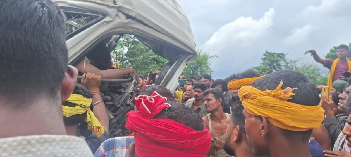 कुरसेला थाना पुलिस जाम हटाने के प्रयास में जुटी हुई थी. दुर्घटना ग्रस्त ट्राली ट्रक व हाइवा को जेसीबी के सहायता से सड़क के बीच से हटाने का प्रयास किया जा रहा था. घटनास्थल पर लोगों की भीड़ जुटी हुई थी. दुर्घटना में हाइवा का मृत चालक तलबाबू सौरेन (31) पिता संजोर सौरैन ककड़बाग गोड्डा का निवासी था. जबकि ट्राली ट्रक का घायल खलासी आयुष कुमार (24) पिता मंटू यादव इंडा बाजार भागलपुर का निवासी बताया गया है.