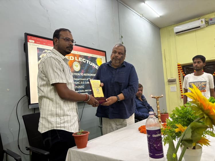 – खगोल शास्त्र के बारे में नई-नई जानकारियों से हुए अवगत कटिहार डीएस कॉलेज के आंतरिक गुणवत्ता आश्वासन प्रकोष्ठ (आइक्यूएसी) के तत्वाधान में महाविद्यालय के भौतिक विभाग ने एक आमंत्रित व्याख्यान आयोजित किया. जिसमें नैहाटी, पश्चिम बंगाल के ऋषि बंकिम चंद्र इवनिंग कॉलेज के भौतिकी के वरिष्ठ प्राध्यापक डॉ देबोज्योति हलदर ने छात्रों के लिए खगोल शास्त्र का संक्षिप्त परिचय विषय पर व्याख्यान दिया. व्याख्यान के दौरान विद्यार्थियों की अधिक सहभागिता रही. कार्यक्रम के मुख्य अतिथि के रूप में कॉलेज के प्राचार्य प्रो संजय कुमार सिंह थे. अध्यक्षीय संबोधन में उन्होंने खगोल शास्त्र के बारे में लोगों के अंदर स्वाभाविक जिज्ञासा होने की बात कही. प्राचार्य ने छात्रों से इस व्याख्यान का पूर्ण लाभ लेने का आवाहन किया. आंतरिक गुणवत्ता आश्वासन प्रकोष्ठ के संयोजक डॉ स्वामी नंदन ने इस तरह के आयोजन की प्रासंगिकता के बारे में बताया कि कैसे हर विषय के छात्र खगोल शास्त्र के बारे में नई नई जानकारियां प्राप्त कर सकते हैं. भौतिक विभाग की अध्यक्षा डॉ बिपाशा राहा ने आगत अतिथि का स्वागत किया और शिक्षकों एवं विद्यार्थियों को इस विषय की मौलिक जानकारी देकर कार्यक्रम की रूपरेखा तैयार की. डॉ देबोज्योति हलदर ने बड़े ही रोचक ढंग से छात्रों का ध्यान विषय वस्तु की ओर आकृष्ट किया. कई ऐसी बातें बतायी जिससे विद्यार्थी अब तक अनभिज्ञ थे. खगोल शास्त्र के मौलिक ज्ञान से अवगत होकर छात्र अत्यंत लाभान्वित हुए और कई छात्रों ने प्रश्न पूछ कर अपनी ज्ञान पिपासा को शांत किया. इस अवसर पर लगभग 200 छात्र उपस्थित थे. शिक्षकों में मुख्य रूप से प्रो मदन कुमार झा, डॉ विलास कुमार झा, डॉ गीतिका, डॉ जितेंद्र वर्मा, डॉ पंकज कुमार, डॉ मिथिलेश कुमार, डॉ शीला कुमारी, डॉ उदय शंकर एवं शिक्षकेत्तर कर्मचारियों में डॉ एए ओंकार, संदीप कुमार झा शामिल थे.
