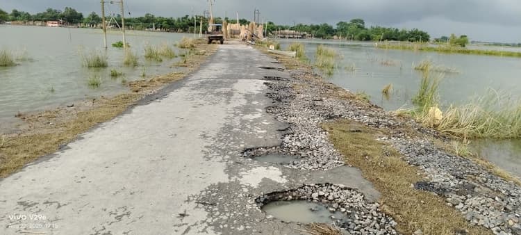 अमदाबाद प्रखंड में बाढ़ के पानी उतरने के बाद कई सड़के जर्जर हो गई है. प्रखंड मुख्यालय से हरदेव टोला गांव की ओर जाने वाली मुख्य सड़क पर बाढ़ का पानी चढ़ गया था. बाढ़ के पानी के तेज धार के बहाव के कारण सड़के कई स्थान पर जर्जर हो गई है. तिलोकी डारा गांव के पास सड़क काफी खराब हो गया है. जलेबी टोला गांव से मेघु टोला गांव की ओर जाने वाली सड़क में जलेबी टोला गांव के पास बाढ़ के पानी के तेज धार में सड़क कट गया है. जहां डायवर्सन हो गया है. बाढ़ के पानी धीरे-धीरे हटने लगा है. चारों तरफ बढ़ के पानी फैले रहने के कारण और बाढ़ आने के कारण खरपतवार की सड़न से दुर्गंध हो रहा है. जिस वजह से लोग कई तरह की संक्रमित रोग से ग्रसित हो रहे हैं. प्रखंड की विभिन्न क्षेत्रों में बाढ़ के पानी हटने से सभी सड़के एवं खेत खलिहान में गंदगी की अंबार लग गई है. स्थानीय प्रशासन की ओर से ब्लीचिंग पाउडर का छिड़काव नहीं किया जा रहा है. जिस वजह से लोग संक्रमित रोग से ग्रसित हो रहे हैं. वर्तमान समय में सर्दी खांसी बुखार डायरिया जैसी संक्रामक रोग से बच्चे बूढ़े जवान सभी ग्रसित हो रहे हैं. स्थानीय ग्रामीणों ने बताया कि प्रखंड में पिछले एक माह से बाढ़ का प्रकोप में था. जिससे लोगों में त्राहिमाम की स्थिति बनी हुई थी. स्थानीय लोगों ने ब्लीचिंग पाउडर का छिड़काव कराने का मांग किया है.