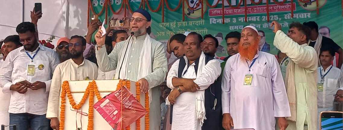 बरारी जेएनसी प्लस टू उवि बरैटा के मैदान में सोमवार को एआइएमआइएम के राष्ट्रीय अध्यक्ष असदुद्दीन ओवैसी ने बरारी विधानसभा क्षेत्र से अपने प्रत्याशी मतिउर रहमान के पक्ष में सभा को संबोधित किया. मौके पर मतिउर रहमान को वोट देने की अपील करते हुए कहा कि एक बार औवेसी के प्रत्याशी को जिताकर देखें. उन्होंने कहा कि मोदी-नीतीश, आरएसएस ने देश को बर्बाद करने में कोई कसर नहीं छोड़ी. अब बिहार को बर्बादी के कगार पर खड़ा कर दिया है. ओवैसी ने मोदी व नीतीश पर प्रहार करते हुए कहा कि महिलाओं को दस हजार की राशि जो दी जा रही है, वह पैसा जनता का है. मोदी- नीतीश का नहीं है. गरीब जनता को गुमराह कर 20 वर्षों से एनडीए ने बिहार में शासन कर भ्रष्टाचार को बढ़ावा दिया है. बिहार में किसी भी कार्यालय या विभाग में बिना घूस दिये काम नहीं होता है. गरीब जनता पिस रही है. अल्पसंख्यक मुसलमानों को दबाया जा रहा है. ओवैसी ने मोदी को चेतावनी देने के अंदाज में कहा कि मुसलमान डरने वाला नहीं है. सीमांचल अपने दम पर जीता है. राष्ट्रीय अध्यक्ष ने अपने प्रत्याशी को भारी मतों से विजयी बनाने की अपील की. उन्होंने तेजस्वी पर भी वार किया. तीन घंटे विलंब से आये ओवैसी को देखने के लिए काफी संख्या में लोग जुटे. मौके पर एआइएमआइएम के प्रदेश अध्यक्ष, जिलाध्यक्ष सहित सरपंच ईरशाद, मुमताज, शमशेर, अब्दुल मतीन समेत एआइएमआइएम के नेता व कार्यकर्ता मौजूद रहे.