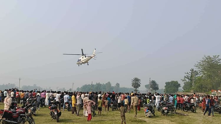 – हेलीकॉप्टर से नहीं उतरे मुकेश सहनी, बिना भाषण दिए लौटे कटिहार कोढ़ा कोढ़ा विधानसभा से कांग्रेस प्रत्याशी पूनम पासवान के समर्थन में आयोजित महागठबंधन की चुनावी सभा में रविवार को वीआईपी प्रमुख मुकेश सहनी का इंतजार करते समर्थकों को निराशा हाथ लगी. कार्यक्रम के अनुसार मुकेश सहनी दोपहर 1:30 बजे शिक्षक प्रशिक्षण केंद्र के मैदान स्थित हेलीपैड पर हेलीकॉप्टर से पहुंचे थे लेकिन महज 10 मिनट रुकने के बाद वे बिना हेलीकॉप्टर से उतरे ही वापस लौट गये. उनके लौटने से सभा में लोगों में निराशा छा गयी. उस समय कांग्रेस प्रत्याशी पूनम पासवान सभा स्थल पर मौजूद नहीं थीं और न ही वहां पर्याप्त भीड़ थी. दो घंटे बाद जब भीड़ जुटी और मंच पर पूनम पासवान ने ग्रामीणों को संबोधित करना शुरू किया. तब तक मुकेश सहनी दोबारा नहीं लौटे. बताया गया कि उनका हेलीकॉप्टर कटिहार में ईंधन खत्म होने के कारण वहीं रुक गया. मोबाइल फोन पर कांग्रेस प्रत्याशी पूनम पासवान से बात की और फोन से ही लोगों से कांग्रेस पार्टी के हाथ के निशान पर मतदान करने की अपील की. मंच पर जब पूनम पासवान ने भाषण देना शुरू किया, तो कई ग्रामीण मंच के पास से उठकर जाने लगे.