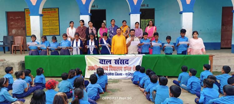 डंडखोरा नये शैक्षणिक सत्र में बाल संसद के निर्वाचित हुए मंत्रिमंडल सदस्यों को समारोह आयोजित कर शपथ ग्रहण कराया गया. उत्क्रमित मध्य विद्यालय संगत टोला में शनिवार को बाल संसद के मंत्रिमंडल के नये सदस्यों को शपथ दिलाया गया. प्रधानाध्यापक लालबिहारी पासवान की देखरेख में आयोजित इस कार्यक्रम में बाल संसद के शिक्षक संयोजक मनोज कुमार जायसवाल ने शपथ दिलाया. मौके पर बाल संसद के शिक्षक संयोजक मनोज जायसवाल ने कहा कि यह शपथ ग्रहण समारोह बच्चों के भीतर लोकतांत्रिक सोच, सामाजिक उत्तरदायित्व और नेतृत्व की भावना को जागृत करने वाली एक प्रेरणादायक पहल है. मौके पर प्रधानाध्यापक लालबिहारी पासवान ने कहा कि बच्चों को अपने जीवन में अनुशासन का पालन करते हुए जिम्मेदार नागरिक बनने का प्रयास करना चाहिए. बाल संसद जैसी गतिविधियां छात्रों में नेतृत्व कौशल, नैतिकता और दायित्वबोध को मजबूती देती हैं. बाल संसद के प्रधानमंत्री के पद पर निर्वाचित सपना कुमारी, उप प्रधानमंत्री बनी साक्षी कुमारी, शिक्षा मंत्री प्रिंस कुमार, उप शिक्षा मंत्री मुस्कान कुमारी, विज्ञान एवं पुस्तकालय मंत्री महिमा मुर्मू, उप विज्ञान एवं पुस्तकालय मंत्री शिवकुमार मरांडी, जल एवं कृषि मंत्री संजीव कुमार, उप जल एवं कृषि मंत्री शिवानी सोरेन, स्वास्थ्य एवं स्वच्छता मंत्री अंबिका कुमारी, उप स्वास्थ्य एवं स्वच्छता मंत्री प्रीतम कुमार, आपदा सुरक्षा मंत्री अदिति कुमारी, उप आपदा सुरक्षा मंत्री रोहित कुमार, सांस्कृतिक एवं खेल मंत्री नोमी कुमारी, उप सांस्कृतिक एवं खेल मंत्री के पद पर चयनित रोहित कुमार को शपथ दिलाया गया. इस दौरान शिक्षक रहमतुल्लाह, शिक्षिका मालती टुडू, रूपा कुमारी, ज्योति जया, कुमारी सुलोचना, ज्योति कुमारी, सबा तरन्नुम, नीलम कुमारी, अर्चना कुमारी, शीतल कुमारी, विष्णुदेव रॉय सक्रिय रहे.