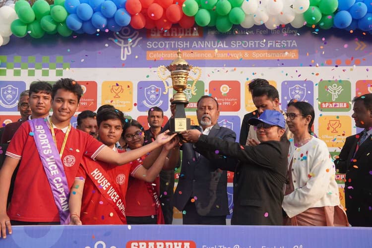 कटिहार. बरमसिया स्थित स्कॉटिश पब्लिक स्कूल में स्पर्धा 2025 में नालंदा हाउस ने शानदार प्रदर्शन करते हुए 22 गोल्ड, 9 सिल्वर तथा 8 ब्रोंज के साथ कुल 39 पदक प्राप्त कर चैंपियंस ट्रॉफी पर अपना कब्जा जमा लिया. अतिथियों ने सभी हाउस को शिल्ड देकर सम्मानित किया. विद्यालय के मीडिया प्रभारी सह कला शिक्षक कौशिक कर ने बताया कि प्री प्राइमरी ग्रुप ने एरोबिक बॉल रेस, ग्रुप ए यानी कक्षा एक और दो से रनिंग रेस 25 मीटर, फ्रॉग जंप, रनिंग रेस 50 मीटर, स्पून व मार्बल रेस, बकेट और बॉल रेस, लॉग जंप, हाइ जंप सहित कई अन्य खेल का आयोजन किया गया. विजेता प्रतिभागियों को पूर्व उप मुख्यमंत्री तरकिशोर प्रसाद, पूर्व राज्य मंत्री निखिल कुमार चौधरी, महापौर उषा देवी अग्रवाल, स्कॉटिस के चेयरमैन डॉ अविनाश कुमार, निर्देशक गीत अविनाश, प्राचार्य श्रीनिवास, उप प्राचार्य जयदीप चट्टोपाध्याय ने गोल्ड, सिल्वर तथा ब्रोंज मेडल प्रदान किया. कार्यक्रम को सफल बनाने में विद्यालय पवन कुमार, सीबीएसई इंचार्ज शैलेंद्र कुमार वर्मा, आयरा वेलेस्कि, मिफ्ता उल हक़, सुधीर कुमार, सुप्रिता सुर, अजीत दुबे, सौमित्र पोरेल, चंदन झा, राजेश रॉय आदि का सहयोग रहा.