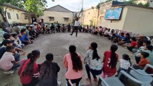 नाटक कार्यशाला के दूसरे दिन बच्चों ने सीखा मूक अभिनय की बारीकियां