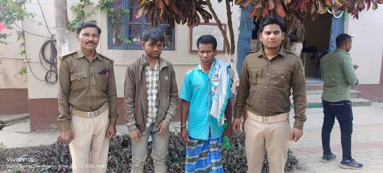डंडखोरा. प्रखंड क्षेत्र के डंडखोरा पंचायत अंतर्गत दुर्गास्थान में बुधवार देर रात घर के पीछे के तरफ टाटी काटकर दो ज्ञात चोर घर में घुसकर चोरी कर रहे थे. घर के परिजन शेखर कुमार ने बताया घर में घुसते हुए आवाज आया. चोरों को घर में देख कर हल्ला किया. एक चोर ने खेत में सिचाईं करने वाले मोटर पंप अपने कंधा पर लेकर घर के पीछे से भाग रहा था. दूसरा चोर मेरा मोटरसाइकिल घर से निकलने का प्रयास कर रहा था. हम लोग हल्ला करते हुए चोर को पकड़ने के लिए दौड़ पड़े. इस बीच घर के बाहर सड़क पर बिजली का मोटर पंप फेक दोनों चोर भागने लगे. चोर को पीछा करते हुए शोर भी मचाये. आसपास के ग्रामीण जग गये और ग्रामीणों के सहयोग से एक चोर को खदेड़ कर पकड़ लिये. जबकि दूसरा चोर अंधेरा का फायदा उठाकर वह भागने में सफल रहा. पूछताछ में चोर अपना नाम 32 वर्षीय मो शाहिल पिता मो मोहिम गांव रसूलपुर कुमारीपुर थाना मनिहारी बताया. भागने वाला दूसरा चोर मो तजमुल पिता रुस्तम गांव लाभा स्टेशन के पास थाना रोशना बताया. इस घटना की जानकारी ग्रामीणों द्वारा 112 डायल कर पुलिस पदाधिकारी को दी. तुरंत ही घटनास्थल पर पुलिस पहुंचकर चोर को अपने कब्ज में लेकर ग्रामीण के सहयोग से डंडखोरा स्वास्थ्य केंद्र में इलाज कर हिरासत में ले लिया. थाना अध्यक्ष मुकेश कुमार ने बताया कि चोर को न्यायिक हिरासत में भेज कर आगे की कार्रवाई की जा रही है. थाना अध्यक्ष ने बताया कि स्थानीय लोगों के जागरूक होने की वजह से रंगे हाथ चोर पकड़ा गया है. उन्होंने कहा कि डंडखोरा पुलिस अपराध नियंत्रण को लेकर पूरी तरह संकल्पित है. अपराध नियंत्रण में सभी का सहयोग जरूरी है. उन्होंने कहा कि किसी भी तरह की घटना होने पर 112 पर कॉल कर सूचना दे सकते है.