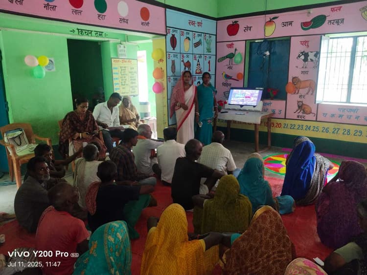 कोढ़ा प्रखंड के पवई पंचायत की आंगनवाड़ी केंद्र 69 दिवंडी में शुक्रवार को सामाजिक सुरक्षा पेंशन योजना का लाइव प्रसारण किया गया. कार्यक्रम महिला पर्यवेक्षक शशि सिन्हा की निगरानी में आयोजित हुआ. आंगनबाड़ी सेविका रीना कुमारी ने सक्रिय भूमिका निभायी. लाभुकों को सरकार द्वारा संचालित विभिन्न सामाजिक सुरक्षा पेंशन योजनाओं की विस्तृत जानकारी दी गयी. वृद्धा पेंशन, विधवा पेंशन, दिव्यांग पेंशन जैसी योजनाएं प्रमुख रही. सेविका ने लाभुकों को योजनाओं में आवेदन की प्रक्रिया, आवश्यक दस्तावेज, पात्रता शर्तें आदि के बारे में विस्तार से बताया.