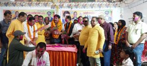 होली मिलन समारोह में एक दूसरे को लगाया रंग अबीर