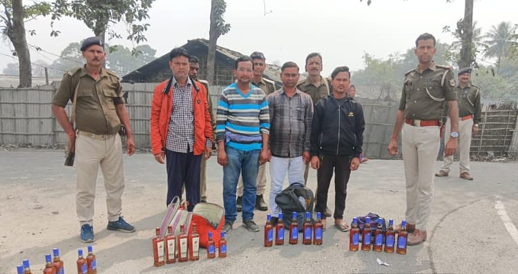 कोढ़ा कोढ़ा थाना पुलिस ने गुप्त सूचना के आधार पर महेशपुर सोतीपार चौक से चार शराब तस्करों को गिरफ्तार किया है. जिसके पास से 15 लीटर विदेशी शराब बरामद की गयी. गिरफ्तार तस्कर रंजीत यादव पिता स्व सीताराम यादव, मनीष कुमार पिता स्व चंद्रिका यादव, राजेश कुमार यादव पिता स्व रामलाल यादव, नरेश बंजारा पिता स्व मेवालाल बंजारा, सभी नया टोला जुराबगंज, वार्ड नं एक, कोढ़ा निवासी हैं. पुलिस ने इनके पास से प्रत्येक के पास से 3.75 लीटर विदेशी शराब बरामद की. जिससे कुल बरामद शराब की मात्रा 15 लीटर हुई. थाना पुलिस की टीम ने महेशपुर सोतीपार चौक पर छापेमारी की. चारों तस्करों को रंगे हाथों गिरफ्तार किया गया. उनके पास से अवैध शराब बरामद करने के बाद उन्हें थाने लाया गया. जहां पूछताछ के बाद उनके खिलाफ संबंधित धाराओं में मामला दर्ज कर आगे की कानूनी प्रक्रिया शुरू कर दी गयी.