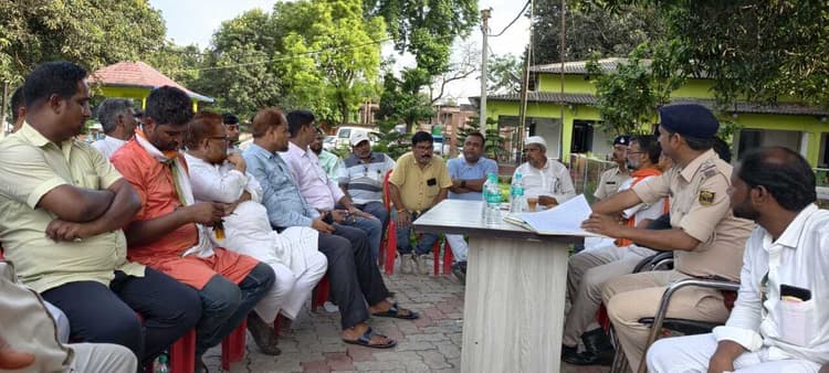 आजमनगर. थाना प्रांगण में मुहर्रम को लेकर अपर थानाध्यक्ष अरविंद कुमार शर्मा की अध्यक्षता में शांति समिति की बैठक की गयी. बैठक में उपस्थित अधिकारियों तथा जनप्रतिनिधियों ने शांतिपूर्ण मुहर्रम मनाये जाने का लोगों से अपील की. बताया जाता है कि आजमनगर थाना क्षेत्र में इससे पूर्व जब भी मुहर्रम का त्योहार आता है. इस क्षेत्र के लोग मिलजुल कर त्योहार मनाने में अहम भूमिका निभाते हैं. हिंदू मुस्लिम दोनों समुदाय के लिए एक दूसरे के त्योहार में हाथ बंटाते हैं. अपर थानाध्यक्ष अरविंद कुमार शर्मा ने कहा की असामाजिक तत्वों पर पुलिस की पैनी नजर रहेगी. लोगों से अफवाह पर ध्यान नहीं दिए जाने की अपील करते हुए अरविंद कुमार शर्मा ने कहा कि किसी भी तरह का कोई मामला हो तो पुलिस को सूचना तुरंत दे. इस मौके पर मुखिया भारत राय 20 सूत्री अध्यक्ष नंदलाल पाल, उपाध्यक्ष सुनील कुमार सिन्हा, गुड्डू भगत, राजद नेता मेराज आलम, मनोज भगत, जिला परिषद अब्दुल सलाम, मुखिया प्रतिनिधि गफ्फार आलम, इजहार आलम, मोहतमिम, अजहर निजामी, नंदलाल राय साहाजान आदि लोग उपस्थित रहे.