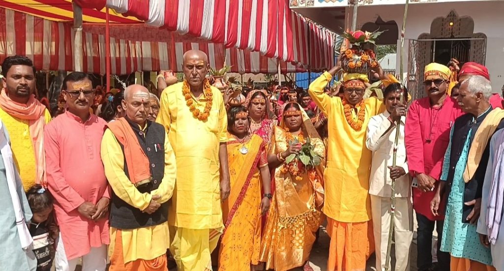 शिव मंदिर में प्राण-प्रतिष्ठा, हरिनाम संकीर्तन यज्ञ को ले निकली कलश शोभायात्रा