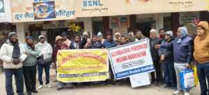 पेंशन कटौती के विरोध में टेलीफोन भवन के सामने प्रदर्शन