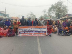 18 किसान परिवारों को खेत पर जाने से रोकने के विरोध में प्रदर्शन