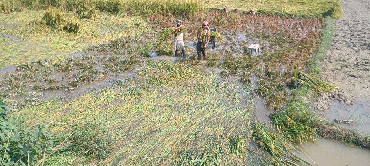कोढ़ा. प्रखंड क्षेत्र के विभिन्न हिस्सों में हाल ही में बंगाल की खाड़ी से उत्पन्न चक्रवाती तूफान के कारण हुई बारिश की वजह से राज्य के धान फसलों में फॉल्स स्मट रोग का खतरा बढ़ गया है. जिससे किसानों की परेशानी बढ़ गयी है. इस बीमारी से उत्पादकता प्रभावित हो सकती है. कृषि वैज्ञानिकों की मानें तो चक्रवाती तूफान की बारिश के बाद वातावरण में सापेक्षिक आर्द्रता 80 से 90 प्रतिशत तक बढ़ गयी है. साथ ही अधिकतम तापमान 28 से 30 डिग्री सेल्सियस और न्यूनतम 22 से 24 डिग्री सेल्सियस और हवा की गति तीन से छह किमी प्रतिघंटा देखी जा रही है. देर से हुई धान की रोपनी, आलू की रोपनी, मक्का की रोपनी वर्तमान में कोढ़ा के अधिकांश में देर से रोपी गयी धान की फसलें फूल निकलने, दुग्धावस्था में जमीन के तले मक्का और अगहनी धान में दाना भरने की अवस्था में हैं. जो वायरस और कवक संक्रमण की चपेट में है. धान का यह चरण अत्यधिक संवेदनशील होता है. यह फफूंद परागण काल के दौरान बालियों पर संक्रमण कर दानों को पीले, नारंगी अथवा हरे-काले रंग के मखमली गोलों में परिवर्तित कर देती है, जिस कारण दाने भर नहीं पाते जिससे धान की उत्पादकता, गुणवत्ता और बाजार मूल्य में गिरावट होती है.
