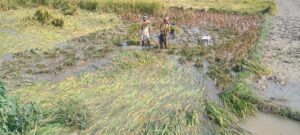 कोढ़ा. प्रखंड क्षेत्र के विभिन्न हिस्सों में हाल ही में बंगाल की खाड़ी से उत्पन्न चक्रवाती तूफान के कारण हुई बारिश की वजह से राज्य के धान फसलों में फॉल्स स्मट रोग का खतरा बढ़ गया है. जिससे किसानों की परेशानी बढ़ गयी है. इस बीमारी से उत्पादकता प्रभावित हो सकती है. कृषि वैज्ञानिकों की मानें तो चक्रवाती तूफान की बारिश के बाद वातावरण में सापेक्षिक आर्द्रता 80 से 90 प्रतिशत तक बढ़ गयी है. साथ ही अधिकतम तापमान 28 से 30 डिग्री सेल्सियस और न्यूनतम 22 से 24 डिग्री सेल्सियस और हवा की गति तीन से छह किमी प्रतिघंटा देखी जा रही है. देर से हुई धान की रोपनी, आलू की रोपनी, मक्का की रोपनी वर्तमान में कोढ़ा के अधिकांश में देर से रोपी गयी धान की फसलें फूल निकलने, दुग्धावस्था में जमीन के तले मक्का और अगहनी धान में दाना भरने की अवस्था में हैं. जो वायरस और कवक संक्रमण की चपेट में है. धान का यह चरण अत्यधिक संवेदनशील होता है. यह फफूंद परागण काल के दौरान बालियों पर संक्रमण कर दानों को पीले, नारंगी अथवा हरे-काले रंग के मखमली गोलों में परिवर्तित कर देती है, जिस कारण दाने भर नहीं पाते जिससे धान की उत्पादकता, गुणवत्ता और बाजार मूल्य में गिरावट होती है.
