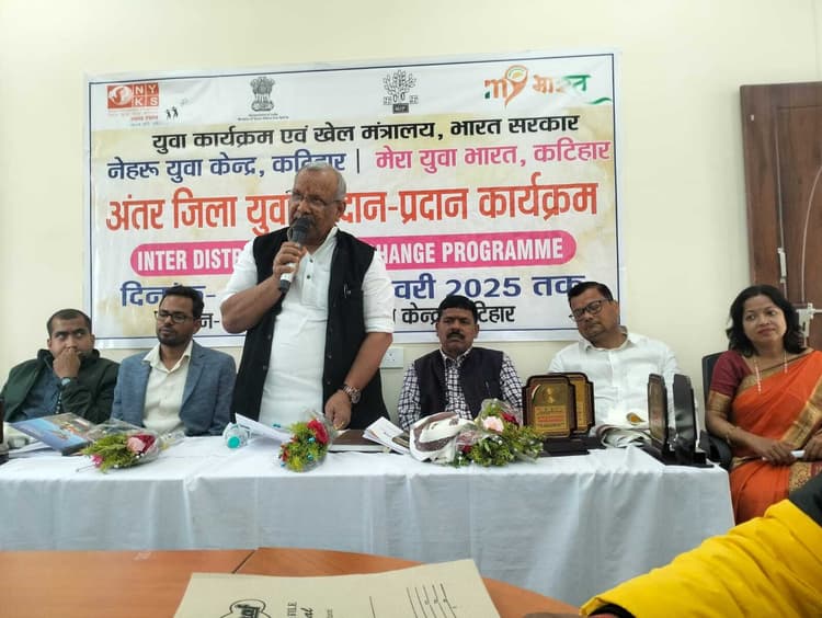 – पूर्व डिप्टी सीएम ने अंतर जिला युवा आदान-प्रदान कार्यक्रम का किया शुभारंभ कटिहार युवा कार्यक्रम एवं खेल मंत्रालय, भारत सरकार के नेहरू युवा केंद्र कटिहार की ओर से जिला पंचायत संसाधन केंद्र के सभागार में गुरुवार को पांच दिवसीय आवासीय अंतर जिला युवा आदान-प्रदान कार्यक्रम का शुभारंभ किया गया. कार्यक्रम के अंतर्गत युवाओं को स्थानीय लोगों से संवाद, विभिन्न विषयों यथा शिक्षा, स्वास्थ्य, आपदा, रोजगार और स्वरोजगार, कृषि आदि के विषय में जानकारी प्रदान की जायेगी. कार्यक्रम में प्रतिभागी के रूप में पटना जिले से 27 युवा शामिल हुए है. कार्यक्रम का विधिवत शुभारंभ स्वामी विवेकानंद जी को पुष्पांजलि अर्पित करते हुए दीप प्रज्ज्वलित कर मुख्य अतिथि पूर्व उप मुख्यमंत्री सह सदर विधायक तारकिशोर प्रसाद ने किया. कार्यक्रम के उदघाटन सत्र की अध्यक्षता नेहरू युवा केन्द्र के जिला युवा अधिकारी जनक राज मीना ने की. जिला युवा अधिकारी ने कार्यक्रम के उद्देश्य पर विस्तार से प्रकाश डाला. पूर्व डिप्टी सीएम ने युवाओं को संबोधित करते हुए कटिहार में विभिन्न स्थानों यथा दुर्गास्थान, गोगबील, मनिहारी गंगा घाट, गोरखनाथ मंदिर आदि के विषय में बताया एवं युवाओं को देश के प्रधानमन्त्री के नेतृत्व में विकसित भारत बनाने के लिए योगदान देने के लिए प्रेरित किया गया. शुभारंभ के अवसर पर विशिष्ट अतिथियों के रूप में भाजपा के पूर्व जिलाध्यक्ष लक्खी महतो, भाजपा नेता बबन झा, जिला परियोजना पदाधिकारी बृजमोहन यादव, जिला सलाहकार आपदा प्रबंधन अमन कुमार, लोक गायिका कंचन प्रिया, केआरपी सच्चिदानंद पंडित, समाजसेवी हरि प्रसाद मंडल एवं बिक्रम कुमार मंडल आदि उपस्थित थे. कार्यक्रम का संचालन युवा नेता आतिश कुमार दीपांकर ने किया.