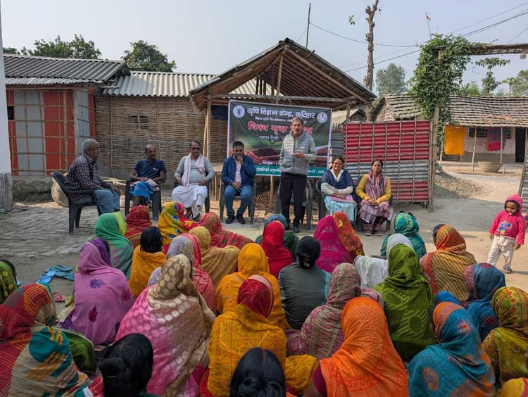 – विश्व मृदा दिवस कार्यक्रम में मिट्टी की सेहत सही रखने को प्राकृतिक खेती विषय पर किसानों को दी गयी जानकारी कटिहार मनसाही प्रखंड के कृषि विज्ञान केन्द्र कटिहार द्वारा चयनित मॉडल गांव लहसा में विश्व मृदा दिवस कार्यक्रम का आयोजन किया गया. इस अवसर पर कृषि विज्ञान केंद्र कटिहार के वरीय वैज्ञानिक सह प्रधान डॉ मृणाल वर्मा ने किसानों को बताया कि मिट्टी व पानी जीवन का आधार है. मिट्टी की सेहत को सही रखने के लिए मिट्टी की जांच आवश्यक है. अगर किसान् सही मात्रा में रासायनिक उर्वरक् का प्रयोग करते है तो मिट्टी की सेहत लम्बे समय तक ठीक रह पायेगी. कृषि वैज्ञानिक पंकज कुमार ने मिट्टी की जांच एवं मृदा स्वास्थ कार्ड की अनुशंसा को समझने का तरीका एवं रासायनिक उर्वरको पर निर्भरता कम करने के लिए जीवाणु खाद के रूप में अजोटोबैक्टर व फोस्फेट घोलक जीवाणु विषय पर किसानों को प्रशिक्षित किया. कृषि वैज्ञानिक डॉ नंदिता कुमारी ने मिट्टी की सेहत सही रखने के लिए प्राकृतिक खेती विषय पर किसानों को जानकारी दी. सहायक स्वर्ण प्रभा रेड्डी ने जल प्रबंधन विषय व मिट्टी जांच के लिए नमूना लेने के तरीके पर प्रकाश डाला. इस अवसर पर पंचायत समिति सदस्य मिथिलेश कुमार सिंह ने कहा कि किसानों के बीच मिट्टी की सेहत के संबंध में जागरूकता होने से कृषक समुदाय को उत्पादकता बढ़ाने में मदद मिलेगी. साथ ही किसान लंबे समय तक अपने खेत से अच्छा उत्पादन ले सकेंगे.