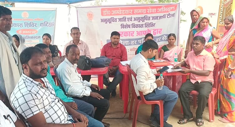 हसनगंज प्रखंड के जगरनाथपुर पंचायत के गोदैया गांव में बुधवार को डाॅ आंबेडकर समग्र सेवा अभियान के तहत विशेष विकास शिविर का आयोजन किया. शुभारंभ बीडीओ रीना कुमारी व प्रखंड कल्याण पदाधिकारी रुपेश कुमार ने संयुक्त रूप से किया. प्रखंड कल्याण पदाधिकारी रुपेश कुमार व पूर्व पंचायत समिति प्रतिनिधि सदानंद तिर्की ने बताया कि डॉ आंबेडकर समग्र सेवा अभियान के तहत विशेष विकास शिविर का शुभारंभ लोक कल्याणकारी योजनाओं के लाभ से वंचित व्यक्तियों को जोड़ना है. थीम सरकार आपके द्वार, हर टोला- हर परिवार- हर सेवा कार्यक्रम तहत सभी अनुसूचित जाति व अनुसूचित जनजाति टोलों में विशेष अभियान चलाकर लोक कल्याणकारी योजनाओं के लाभ से वंचित व्यक्तियों को जोड़ना है. अभियान के दौरान जो छूट गए हो उन्हें भी ऑन-स्पॉट लाभ दिलाना है. प्रस्तावित टोला में विशेष विकास शिविर के पूर्व ही योजनाओं के आच्छादन के लिए संबंधित विभागों से ऑफलाइन व ऑनलाइन आवेदन प्राप्त करने और निष्पादन करने के लिए लाभुकों से आवेदन प्राप्त किया गया. जिसमें राज्य सरकार द्वारा संचालित 22 विभाग से संबंधित योजनाओं का लाभ दिया. जन्म-मृत्यु प्रमाण पत्र, आंगनवाड़ी केंद्र, विद्यालय में नामांकन, राशन कार्ड, ई-श्रम कार्ड, जॉब कार्ड, वृद्धा पेंशन, सामाजिक सुरक्षा पेंशन, उज्ज्वला योजना, आयुष्मान कार्ड व प्रधानमंत्री आवास योजना का लाभ दिया जा रहा है. बताया कि जाति, आवासीय एवं आय प्रमाण पत्र बनवाने के लिए अब पंचायत सरकार भवन में ही सुविधा उपलब्ध है. अब लोगों को प्रखंड या अनुमंडल कार्यालय में जाने की आवश्यकता नहीं है. शिविर में विभिन्न विभागों के स्टाल लगाकर लोगों से आवेदन प्राप्त किए गए. साथ ही ऑन द स्पॉट निष्पादन भी किया. पीएचडी कनीय अभियंता सृष्टि कुमारी, पंचायत सचिव प्रदीप चौहान, विकास मित्र वासुदेव कुमार सहित संबंधित विभाग के लगे स्टाल पर अधिकारी व कर्मचारीगण आदि मौजूद रहें.
