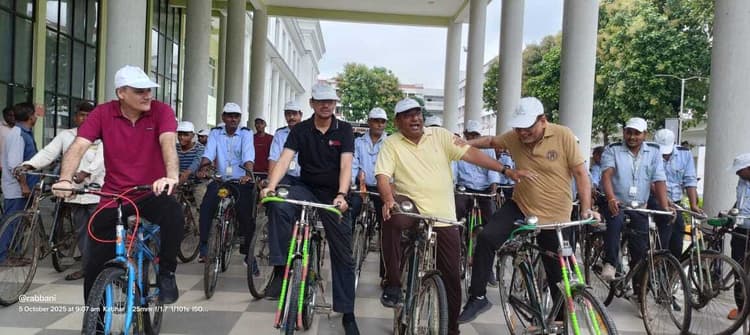 – अल करीम विवि के कुलपति से लेकर अन्य पदाधिकारियों ने लिया भाग कटिहार अल करीम विवि कटिहार के कुलपति प्रो सैय्यद अहमद के नेतृत्व में फीट इंडिया अभियान के तहत संडे ऑन साइकिल कार्यक्रम का आयोजन किया गया. कुलपति प्रो अहमद ने बताया कि विवि अनुदान आयोग यूजीसी एवं भारतीय खेल प्राधिकरण के तत्वावधान में रविवार को सम्पूर्ण देश के उच्च शिक्षण संस्थानों में फीट इंडिया अभियान के तहत संडे ऑन साइकिल कार्यक्रम का आयोजन किया गया. कार्यक्रम फीटनेस की डोज, आधा घंटे रोज में शिक्षक व कर्मचारियों ने भाग लिया. अलकरीम विवि परिसर में संडे ऑन साइकिल कार्यक्रम पूरे जोरशोर से मनाया गया. कुलपति प्रो सैय्यद मोई अहमद, कुलसचिव के साथ विवि के पदाधिकारी, शिक्षकगण एवं सैकड़ों की संख्या में अन्य कर्मियों ने शहर में साइकिल यात्रा कर स्वास्थ्य एवं प्रदूषण के प्रति लोगों में जागरूकता फैलायी. इस अवसर पर कुलपति प्रो सैय्यद मोईद अहमद ने बताया कि साइकिल चलाने से एक तरफ जहां स्वास्थ्य अच्छा रहता है तो दूसरी ओर यह सवारी प्रदूषण को रोकने में कारगर साबित होता है. साइकिल की सवारी बहुत सस्ती एवं आरामदायक होती है.