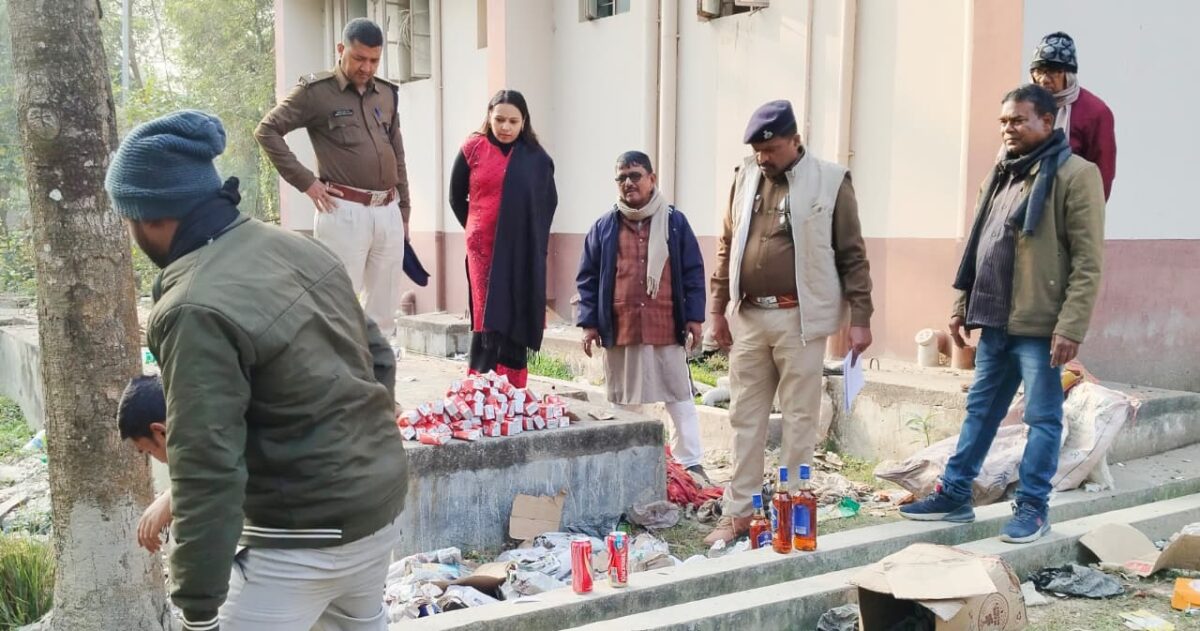जब्त की गयी 80 लीटर शराब की गयी नष्ट
