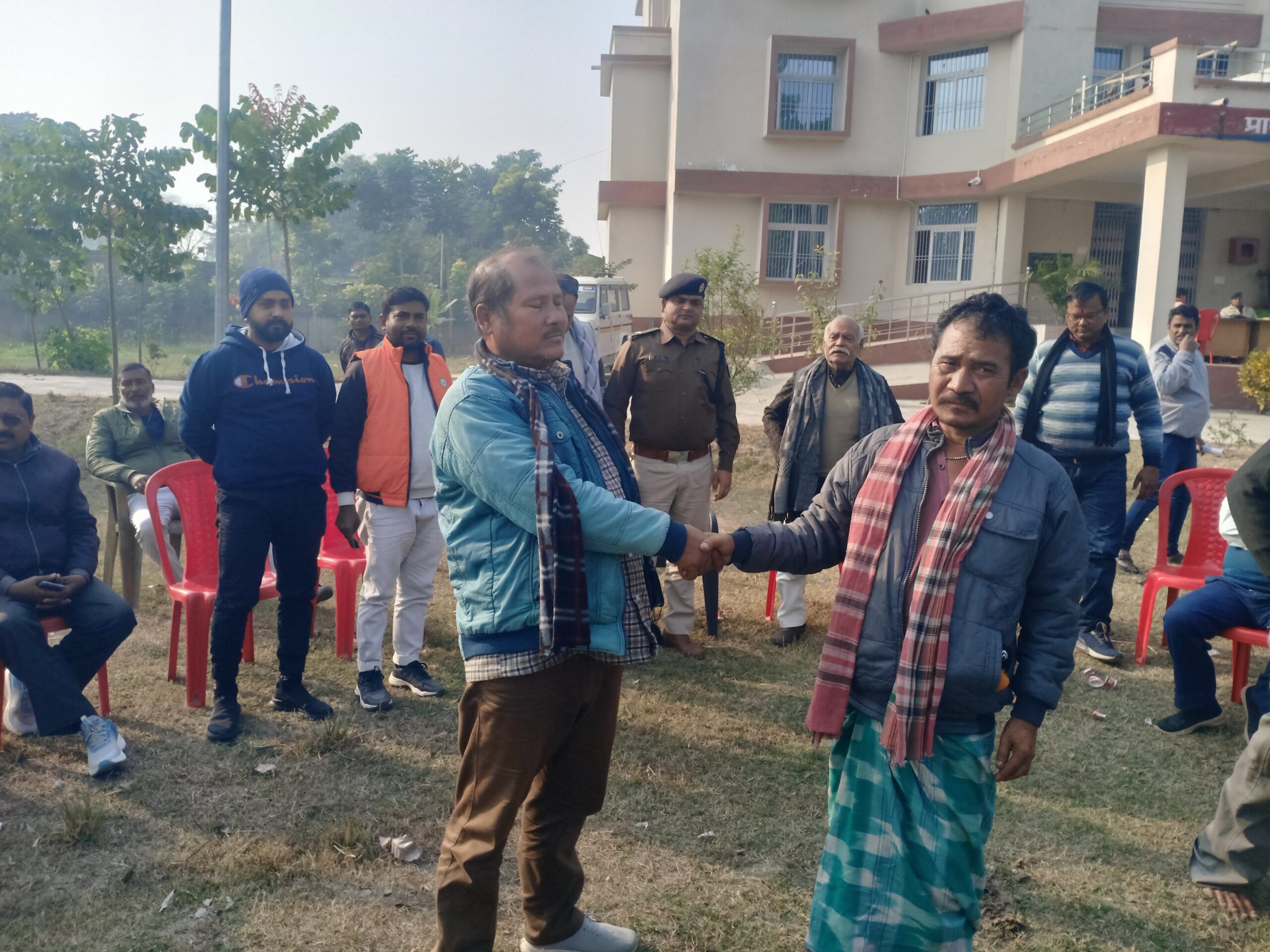 प्राणपुर पिछले दिनों मक्का फसल में सिंचाई को लेकर दो पक्षों में जमकर मारपीट हुई थी. घटना के आरोपित दो से तीन अभियुक्त को गिरफ्तार कर जेल भेजा गया है. सिंचाई को लेकर दोनों पक्षों में तनाव का माहौल कायम था. कभी भी दोनों पक्षों में बड़ी घटना होने कि संभावना बनी हुई थी. एक पक्ष के किसानों ने भारतीय किसान संघ के बैनर तले बस्तौल चौक के समीप एनएच 81 मुख्य सड़क जाम कर सिंचाई कराने की मांग की थी. प्रभात खबर ने प्रमुखता से खबर प्रकाशित की थी. जिसको संज्ञान में लेते हुए जिला प्रशासन के द्वारा प्राणपुर पुलिस प्रशासन पर दबाव बनाते हुए प्राणपुर थानाध्यक्ष सह पुलिस इंस्पेक्टर रंजीत कुमार के अध्यक्षता में मक्का फसल सिंचाई को लेकर शांति समिति की बैठक किया. प्राणपुर प्रखंड प्रमुख अमित कुमार साह, मुखिया संघ प्रखंड अध्यक्ष शिव नारायण यादव, भारतीय किसान संघ के उत्तर बिहार प्रांत मंत्री मनोज कुमार गुप्ता, सरपंच राहिल, पूर्व मुखिया मनोज कुमार साह, मुखिया प्रतिनिधि प्रमोद कुमार सिंह, कादिर मंसुरी के द्वारा दोनों पक्षों को सिंचाई का आश्वासन देते हुए तथा समझाते बुझाते हुए दोनों पक्षों के सदस्यों को वापस में गले से गले मिलाकर दोनों पक्षों का तनाव को समाप्त कराया. दोनों पक्षों के अमर सिंह, मनीराम सिंह, अरुण देवी, राममूर्ति सिंह, प्रतिमा देवी, चकली देवी, शिवनारायण सिंह, मसनु सिंह, टेकन सिंह एवं राधा लाल सिंह सहित दर्जनों समाजसेवी, जनप्रतिनिधि एवं किसान मौजूद थे.