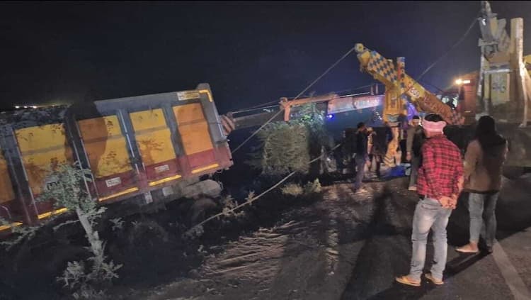 हाइवा अनियंत्रित होकर पलटा