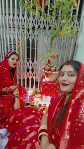 सुहागन ने आंगन में की पूजा, परिवार के समृद्धि की कामना की