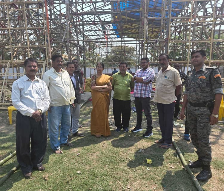 कटिहार शहर के वार्ड नंबर चार स्थित तेजा टोला लंगड़ा बगान में चैती दुर्गा पूजा समिति की ओर से आयोजित होने वाली चैती दुर्गा भव्य पूजा पंडाल का निर्माण कार्य का जोरशोर से किया जा रहा है. इसी क्रम में मंगलवार को मेयर उषा देवी अग्रवाल ने पंडाल का जायला लिया. महापौर उषा देवी अग्रवाल ने स्थानीय लोगों से बन रहे पूजा पंडाल की भव्यता की जानकारी ली. इस मौके पर पूजा पंडाल समिति के सदस्यों के साथ कई अन्य लोग मौजूद थे.