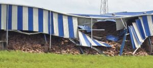 अचानक टूट कर बिखरा गोदाम, अनाज को नुकसान