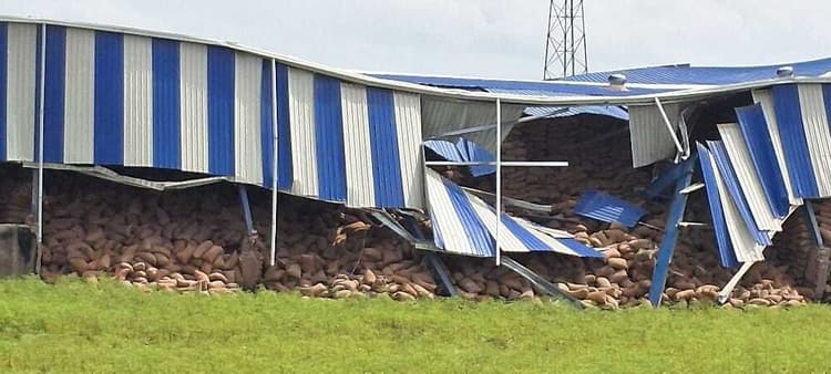 कुरसेला चिंताहरण हनुमान मंदिर से आगे एनएच 31 किनारे बना गोदाम पानी में धंस कर टूट कर बिखर गया. गोदाम के टूटने से हजारों बोरा मक्का किनारे के पानी में जा गिरा. धारनुमा पानी से गोदाम से घिरा हुआ है. आगे का भाग छोड़ गोदाम के तीन तरफ पानी है. जिस जगह टूटे गोदाम से मक्का का बोरा पानी में गिरा था उस जगह पानी की गहराई पांच फीट है. गोदाम रात दो बजे टूट कर बिखर गया. अचानक गोदाम टूट कर बिखरने से अफरा तफरा मच गयी. गोदम पर मौजूद कर्मियों ने तत्काल इसकी जानकारी गोदाम मालिक संचालक को दी. अहले सुबह से गोदाम में रखे बांकी मक्का के बोरा का बचाव करने के लिये मजदूर जुटा हुआ था. एनएच किनारे बना यह गोदाम अयोध्यागंज बाजार निवासी अमित कुमार अग्रवाल का बताया गया. व्यवसायी ने इसमें मक्का खरीद कर बिक्री के लिये रखा है. 56784 मक्का का बोरा को क्षति का अनुमान है. गोदाम मालिक ने बताया कि गोदाम टूटने और मक्का बोरा के पानी में जाने से तकरीबन एक करोड़ का क्षति का अनुमान है. व्यवसायी गोदाम के अचानक बिखर कर गिरने को लेकर भौचक और भयातुर थे. बताया गया कि व्यवसायी एचडीएफसी बैंक से ऋण लेकर गोदाम में मक्का का कारोबार कर रहे हैं.