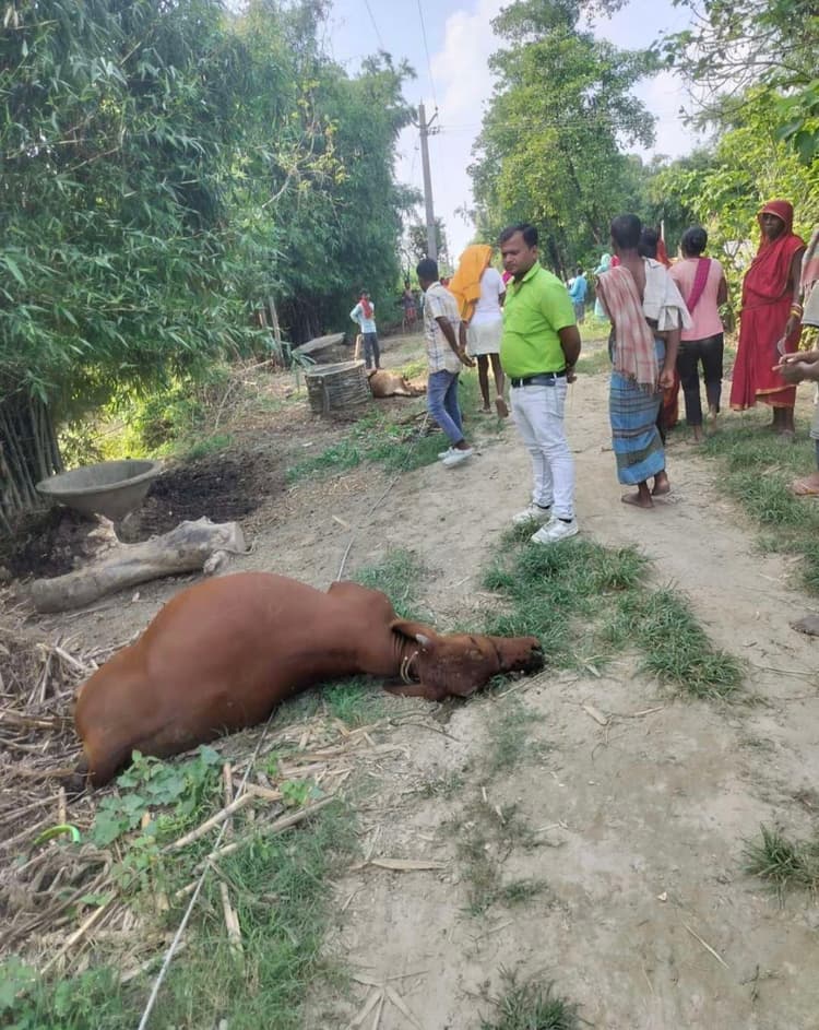 फलका थाना क्षेत्र के पिरमोकाम पंचायत के वार्ड चार जनकपुर गांव में हाई वोल्टेज तार की चपेट में आने से तीन मवेशी की मौके पर मौत हो गयी. पशुपालक ने घटना की सूचना मुखिया विनोद मृधा एवं जिला पार्षद गायत्री कुमारी को दी. जिला पार्षद प्रतिनिधि मनोज कुमार ने अविलंब विद्युत विभाग को सूचना देकर विद्युत आपूर्ति बाधित कराया. मवेशी अस्पताल फलका के चिकित्सक को जानकारी देते हुए मृत पशु का पोस्टमार्टम कराया. पशुपालक का रो-रोकर बुरा हाल है. घटना में करीब डेढ़ लाख रुपये की संपत्ति का क्षति होने का अनुमान लगाया जा रहा है. पशुपालक दिलीप महतो व पन्नालाल महतो जनकपुर निवासी घर के समीप कामत पर मवेशी बंधा हुआ था. हाई वोल्टेज तार के टूटकर गिरने से मवेशी चपेट में आ गया. जिससे दिलीप महतो का दो मवेशी व पन्नालाल महतो का एक मवेशी की मौके पर मौत हो गयी. घटना को लेकर जिला पार्षद गायत्री कुमारी, प्रमुख दीपशिखा सिंह, मुखिया विनोद मृधा, समिति सदस्य सतीश मंडल आदि ने बताया कि क्षेत्र के कई जगहों पर हाई वोल्टेज वायर जर्जर व काफी नीचे झुक जाने के कारण आये दिन मवेशी के अलावा स्थानीय ग्रामीण भी इसके चपेट में आकर अपनी जान गंवा चुके हैं. बावजूद इसके विद्युत विभाग द्वारा उक्त समस्या को लेकर कोई समुचित कदम नहीं उठाया जा रहा है. जो विभाग के घोर लापरवाही को दर्शाता है. विद्युत विभाग द्वारा उक्त समस्या का जल्द से जल्द निदान नहीं किया गया तो सभी ग्रामीण सड़क पर उतर कर विरोध प्रदर्शन करने के लिए बाध्य होंगे. स्थानीय जनप्रतिनिधि व ग्रामीणों ने प्रशासन से पीड़ित पशुपालक को मुआवजा दिलाने की मांग किया है.