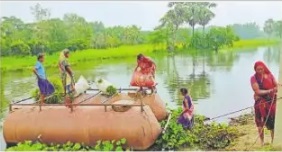 हसनगंज : कोरोना महमारी को लेकर जहां जनजीवन अस्त व्यस्त है. दूसरी तरफ क्षेत्रों में हो रही लगातार बारिश से नदियों में पानी का घटना-बढ़ना जारी है. निचले इलाकों के डूब जाने से पशुचारा का भी घोर संकट है. इसको लेकर प्रखंड के बलुआ पंचायत स्थित जलकर गांव की महिलाएं कमला नदी पार कर पशुओं का चारा लेने जाती हैं. बाढ़ में बाहर से भसकर आये डेम में ग्रामीण महिलाएं दोनों छोर पर मोटी रस्सी बांध कर उसमें सवार होकर चारा लेने पहुंचती हैं जो खतरों से खाली नहीं है. किसान विश्वनाथ महतो, राजित महतो, बिजली देवी, बबली देवी ने कहा की कमला नदी के उस पार खेत रहने से फसल को देखने व पशुचारा लाने के लिए जान जोखिम में डाल आवागमन करना पड़ता है. ग्रामीण महिलाएं कहती हैं कि अपना किसी तरह दिन गुजर जाता है. लेकिन बेजुबान पशुओं का क्या करें, जिसे भूखे नहीं देख सकते हैं. इसलिए जान जोखिम में डालकर नदी के पार चारा लेने के लिए जाना मजबूरी है.