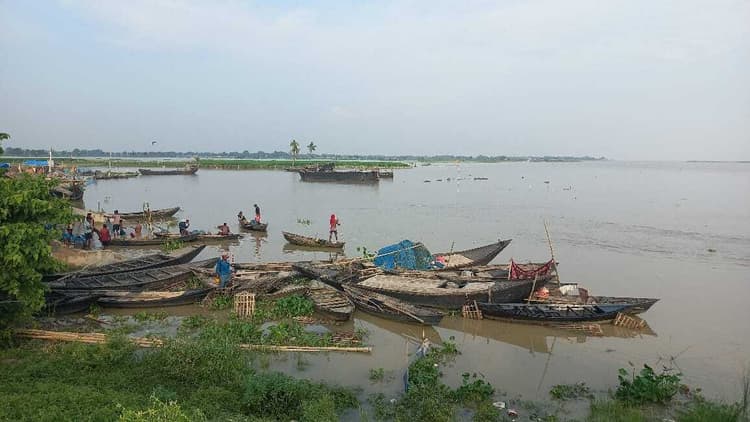 बरारी. काढ़ागोला में गंगा व बरंडी नदी के जलस्तर में लगातार बढ़ोतरी से प्रखंड के बाढ़ से प्रभावित होने वाले 14 पंचायतों के करीब आधा दर्जन गांवों में गंगा का पानी प्रवेश करने लगा है. काढ़ागोला घाट पर गंगा पानी उफान पर है. गंगा दार्जलिंग सड़क व आजमपुर शंकर बांध में गंगा का पानी पहुंच गया है. निचले इलाकों में गंगा का पानी प्रवेश कर रहा है. लोग नदी के तेवर देख कर अभी से सुरक्षित स्थान की तैयारी में जुटे हैं. काढ़ागोला गंगा घाट पर पानी उपर चढ़ गया है. यहां स्पर संख्या 9 काफी सुरक्षित एवं व्यवस्थित बताया जा रहा है. स्पर 8 के निकट गंगा का दबाव बना हुआ है. धनकाहा में कटाव की स्थिति है. स्पर 10 बढ़हड़ा में पानी का दबाव बना हुआ है. बरंडी नदी का दबाव बांध पर काफी बना हुआ है. छह किमी लम्बी बरंडी बांध में बाढ़ नियंत्रण विभाग द्वारा करीब 66 हजार बोरी की बाढ़ सुरक्षात्मक कार्य कराया गया है. जबकि 42 किमी लम्बी आजमपुर शंकर बांध की सुरक्षा में कोई काम नहीं होने की बात ग्रामीण बताते है. बाढ़ का पानी मोहना चांदपुर, डहरा, कांतनगर, बकिया रानीचक, तरियानी, कौवामोड़, देवड़ाधार गांव, गुरुमेला, दक्षिणी व उत्तरी भण्डारतल, गंज टोला, दुर्गापुर, बैसागोविंदपुर का कुंडाराही, रघुनाथपुर आदि जो गंगा की पेट में हैं. वहां पहुंच गया है. कुछ गांव में पानी बाहर ही है तो कुछ गांव पानी से घिर चुका है. लोगों का आवागमन नाव से हो रहा है. नाव ही एक मात्र घर जाने का सहारा है. स्थानीय प्रशासन की चौकसी बनी हुई है. सीओ ने बताया कि बाढ़ की स्थिति पर नजर बनाये हुए हैं. मोहनाचांदपुर के विद्यालय में भी पानी घुस गया है.
