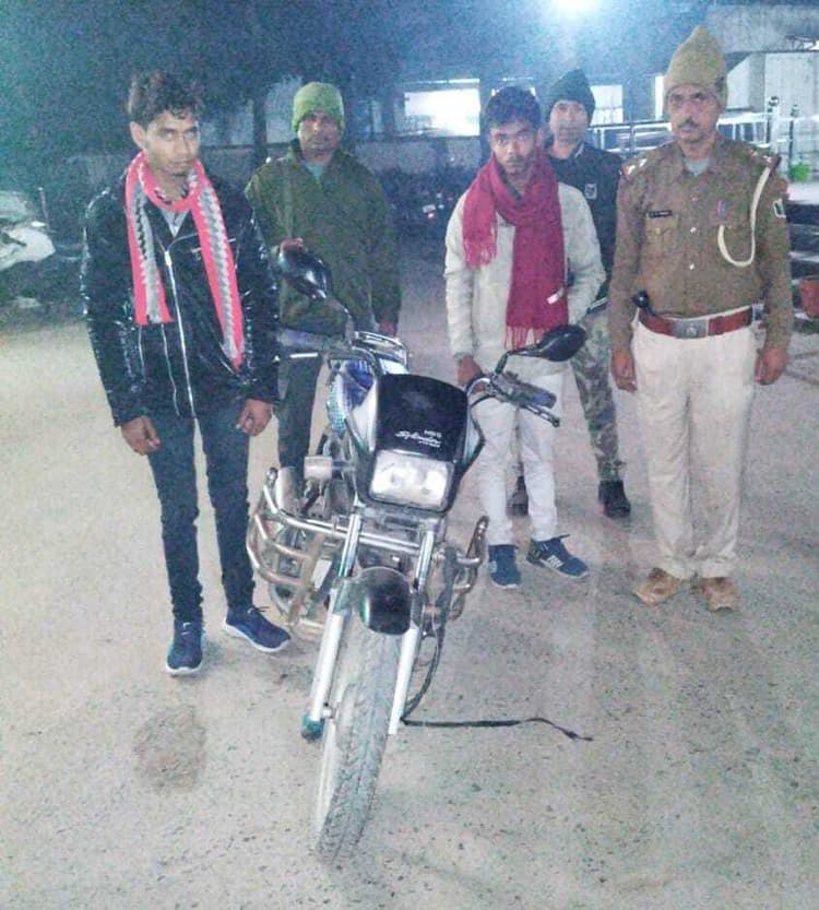 कोढ़ा कोढ़ा पुलिस ने वाहन चेकिंग के दौरान चोरी की एक बाइक के साथ दो आरोपित को गिरफ्तार कर न्यायिक हिरासत में कटिहार भेज दिया. थानाध्यक्ष मुकेश कुमार मंडल ने बताया कि एनएच 31 पथ पर मूसापुर चौक के समीप पुलिस के द्वारा वाहन चेकिंग अभियान चलाया गया. वाहन जांच के क्रम में एक बाइक को रोका गया. बाइक चालक से बाइक की कागजात की मांग की गयी तो वह बाइक से संबंधित किसी प्रकार की कागजात नहीं दिखाये. उन्होंने बताया कि बाइक चोरी की है. तब जाकर बाइक को जब्त कर दोनों चोर को गिरफ्तार कर लिया गया. गिरफ्तार दोनों आरोपित मैनूल व अब्दुल सुभान, दोनों ग्राम चंदवा, वार्ड संख्या 11, थाना रौतारा, कटिहार निवासी है. थानाध्यक्ष ने बताया कि दोनों के विरुद्ध मामला दर्ज कर कटिहार जेल भेज दिया गया है.