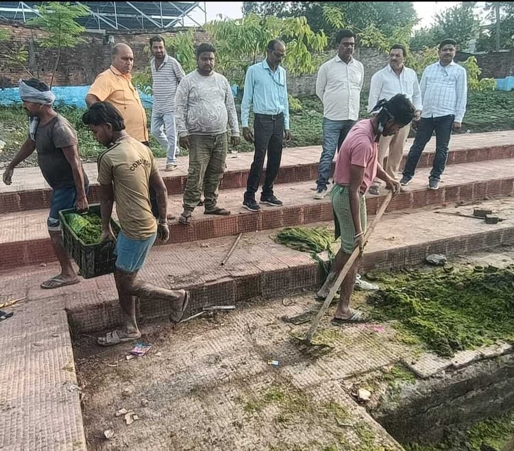 छठ पूजा को लेकर विजय स्पोटिंग क्लब ने कराया छठ घाट की सफाई
