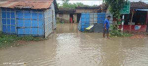 भारी बारिश के कारण रामपुर के वार्ड दो व चार में जलजमाव, घरों में घुसा पानी