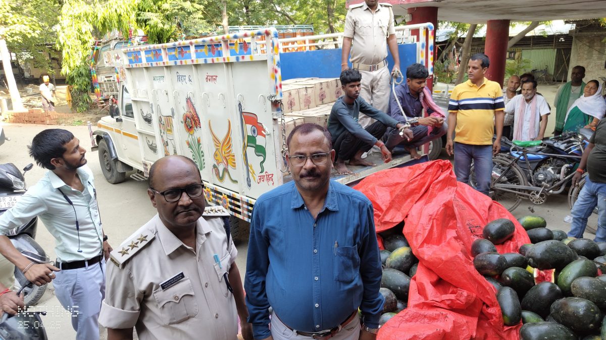 तरबूज लदे पिकअप से 84 कार्टून विदेशी शराब बरामद, दो तस्कर गिरफ्तार