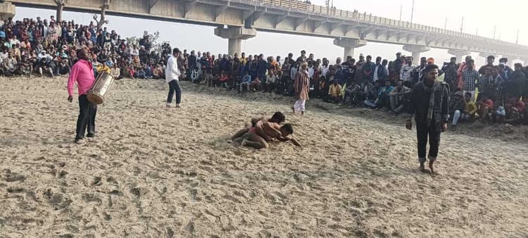 बेलदौर. प्रखंड क्षेत्र के एनएच 107 पथ के उसराहा पुल समीप पौष पूर्णिमा मेले के पहले दिन आयोजित दंगल में आधे दर्जन पहलवानों की जोड़ी ने जोर आजमाइश कर दर्शकों का भरपूर मनोरंजन किया. हालांकि दंगल के दौरान लोगों की भीड़ से उक्त स्थल समीप एन एच 107 पर जाम की स्थिति बनी रही. विदित हो कि मध्य विद्यालय उसराहा परिसर में चार दिवसीय पौष पूर्णिमा मेले के आयोजन से इलाके का माहौल उत्सवी बना हुआ है. चार दिवसीय मेला में दंगल एवं सांस्कृतिक कार्यक्रम श्रद्धालुओं के बीच आकर्षण का केंद्र बना हुआ है. मेले के पहले दिन दंगल में दूर दराज से आए पहलवानों का जमावड़ा लगा हुआ था. वही पोरा के सुंदन पहलवान एवं खगड़िया के इम्तियाज पहलवान के बीच कुश्ती हुई. दोनों पहलवानों की कुश्ती बराबरी पर रही वहीं इनाम की राशि निर्णायक मंडली द्वारा बराबर रूप से बांट दी गई. दूर दराज के चर्चित पहलवानों की जोड़ी देर से पहुंचने के कारण उनके बीच दंगल नहीं हो पाया. महिला पहलवानों का दंगल देखने आसपास के महिलाओं की भीड़ भी उक्त स्थल पर उमड़ पड़ी थी. लेकिन महिला पहलवान के देर से पहुंचने के कारण पहले दिन उनका दंगल नहीं हो पाया इससे महिलाओं में मायूसी थी. वही मेला परिसर में मां कौशल्या (कौशिकी) समेत अन्य देवी देवताओं की पूजा अर्चना एवं दर्शन को लेकर कनकनी भरी ठंड में भी लोगों की भीड़ डटी रही. जबकि देर शाम उक्त चार दिवसीय मेला सह सांस्कृतिक कार्यक्रम का विधिवत उद्घाटन विधायक पन्नालाल सिंह पटेल समेत अनुमंडल एवं प्रखंड स्तरीय पदाधिकारी द्वारा संयुक्त रूप से किया जाना प्रस्तावित है. मौके पर जदयू नेता राजेश सिंह, आनंदी सिंह, सिकंदर सिंह, सचिव अनिल सिंह, कोषाध्यक्ष त्रिभुवन सिंह, पप्पू कुमार सिंह, सुमन सिंह, गणेशी महतो, अक्षय कुमार, चंद्रदेव राम समेत आयोजक मंडली मौजूद थे.