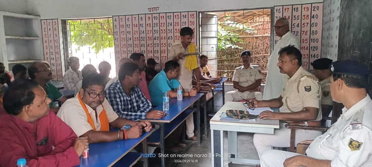 पसराहा थाना में दुर्गा पूजा को लेकर शांति समिति बैठक आयोजित पसराहा. स्थानीय थाना परिसर में में दुर्गापूजा शांतिपूर्ण तरीके से मनाने को लेकर शांति समिति की बैठक हुई. बैठक की अध्यक्षता महद्दीपुर पंचायत के पूर्व मुखिया प्रतिनिधि राजेन्द्र प्रसाद सिंह ने की. पसराहा थाना क्षेत्र के विभिन्न जनप्रतिनिधियों व बुद्धिजीवी की मौजूदगी रही. शांति समिति की बैठक में थानाध्यक्ष संजय कुमार विश्वास ने शांति व सौहार्द से दुर्गा पूजा मनाने की अपील की. थानाध्यक्ष ने कहा कि आफवाह फैलाने वालों पर व वाट्सऐप पर गलत मैसेज करने वालों को चिन्हित कर कार्रवाई की जायेगी. शांति समिति की बैठक में थानाध्यक्ष संजय कुमार विश्वास, अपर थानाध्यक्ष गोविंद कुमार पांडेय,एसआई मो तनवीर आलम, एसआई बागेश्वर तिवारी, एएसआइ नरेंद्र सिंह, चौकीदार अमेश पासवान, मो नोसाद, पप्पी बैठा, नरसिंह साह, मो सोएब, फुलेश्वर पासवान, सुशांत सिंग कुशवाहा, पंचायत समिति जय चंद्र कुमार, अंशु कुमार, गौतम कुमार, सुनील यादव, रणवीर कुमार, नागिना सिंह, जब्बार आलम, नीरज कुमार, सरपंच नंदकिशोर शर्मा, नीतीश कुमार, पारस सिंह, जवाहर सिंह, चंदेश्वरी सिंह सहित दर्जनों लोग मौजूद थे.