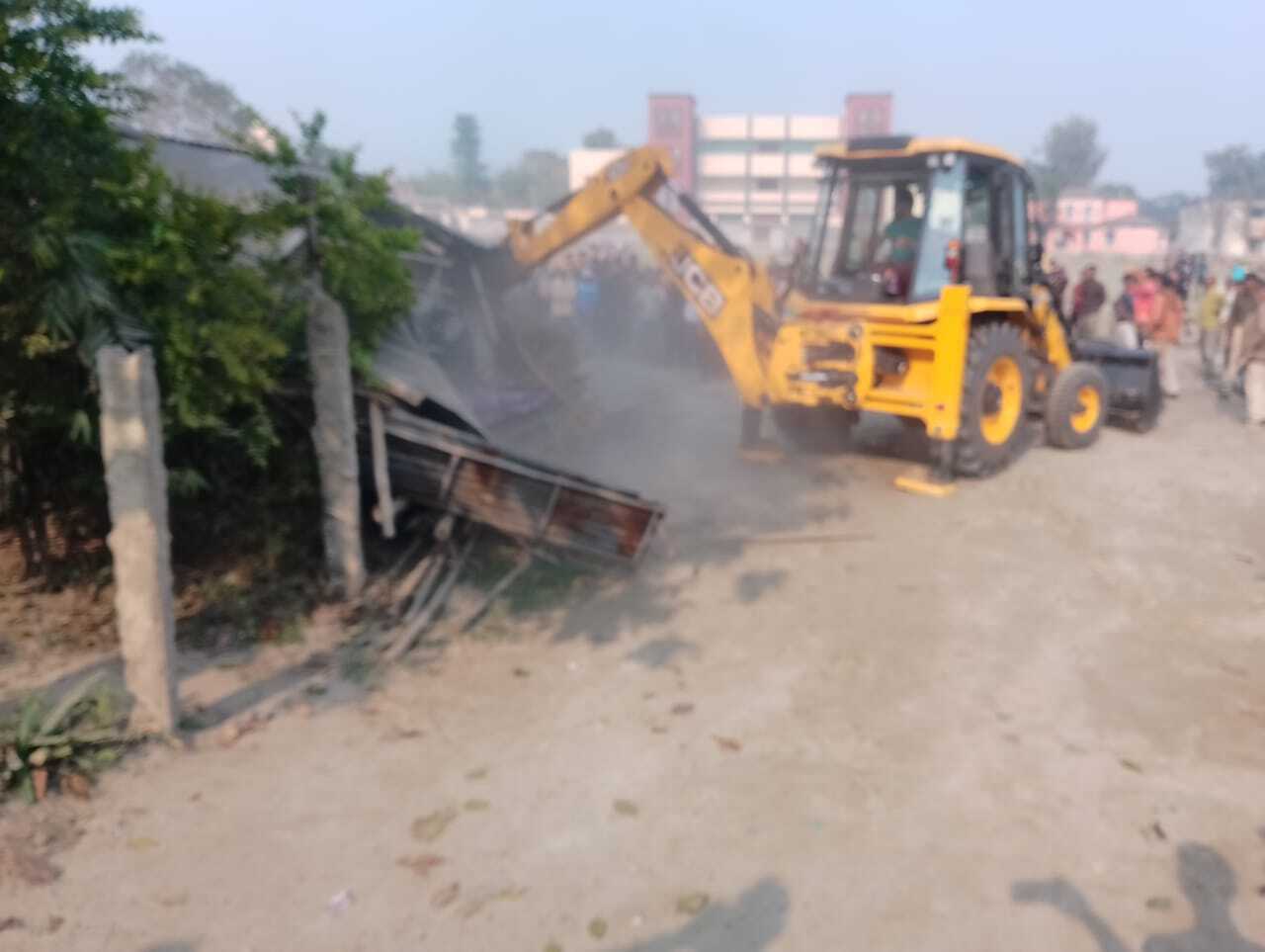बेलदौर. नपं के बेलदौर बाजार को पूरी तरह अतिक्रमण मुक्त करने के लिए अंचल प्रशासन ने कमर कस ली है. इसको लेकर लगातार दूसरे रविवार को भी बेलदौर सीओ अमित कुमार, थानाध्यक्ष परशुराम सिंह एवं नगर पंचायत बेलदौर के जेई सुनील कुमार एवं भारी संख्या में पुलिस बल ने बेलदौर बाजार के अतिक्रमणकारियों के विरुद्ध अभियान चलाकर पथ को अतिक्रमण मुक्त करवाने की मुहिम चलाई. वहीं बेलदौर बाजार के मुख्य सड़क के दोनों किनारे अतिक्रमित पथ को हटाने के लिए दिनभर बुलडोजर गरजता रहा. इस दौरान स्थाई अतिक्रमण कारियों को हाथों में नोटिस थमाकर अविलंब पथ के जमीन को अतिक्रमण मुक्त करने का निर्देश देते रहे. इस बीच अतिक्रमण कारियों के विरुद्ध लगातार कार्रवाई किए जाने से अतिक्रमण कारियों में हड़कंप मचा रहा. सर्वे सड़क के अनुसार अंचल अमीन से पैमाइश करवाई गई है अब सीमांकन कर अतिक्रमण कारियों के घर पर लाल निशान लगाने की कार्रवाई की जाएगी. वहीं पथ के बीचों बीच पड़ रहे काली मंदिर को बगल के जमीन में शिफ्ट किया जाएगा. सीओ अमित कुमार ने बताया पथ के जमीन को स्थाई पक्का मकान बनाने वाले को भी जल्द से जल्द अतिक्रमण मुक्त करवाया जाएगा. इस दौरान एसआई राहुल कुमार, आनंद कुमार के अलावा भारी संख्या में पुलिस बल तैनात थे.