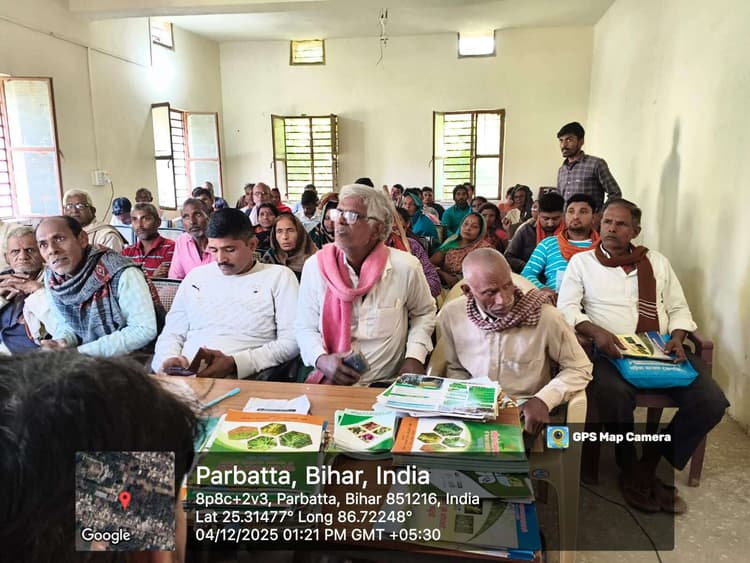 परबत्ता. प्रखंड कृषि कार्यालय स्थित ई किसान भवन के सभागार कक्ष में शुक्रवार को किसान गोष्ठी कार्यक्रम का आयोजन किया गया. उन्नत वैज्ञानिक तकनीक द्वारा रबी फसल की बुआई, उत्पादन, भंडारण, प्रसंस्करण एवं विपणन विषय पर आयोजित किसान गोष्ठी कार्यक्रम का उद्घाटन दीप प्रज्जवलित कर नवनियुक्त प्रखंड कृषि पदाधिकारी प्रमोद कुमार के द्वारा किया गया. कार्यक्रम में तकनीकी प्रबंधक दीपक कुमार स्कंध ने रबी मौसम में मक्का, गेहूं, तिलहन, दलहन के बीजों के बीज उपचार, खेतों की तैयारी, बुवाई के समय, उर्वरक के संतुलित मात्रा के कीटनाशकों की समय समय पर उपयोग, कटाई के समय की सावधानी एवं भंडारण और प्रसंस्करण पर विस्तार से जानकारी दी. कृषि समन्वयक अवधेश कुमार के द्वारा रबी फसलों के बीजों पर सरकार द्वारा अनुदान पर रबी मौसम में बीज पर विस्तार से चर्चा की गई. सहायक तकनीकी प्रबंधक अभिनव कुमार के द्वारा प्रधानमंत्री किसान सम्मान निधि एवं फार्मर रजिस्ट्री जैसी सरकार की दो महत्वपूर्ण योजनाओं पर विस्तृत रूप से बताया. वहीं कृषि समन्वयक ब्रजेश कुमार ब्रजेश ने फसल अवशेष प्रबंधन, के साथ साथ पौधा संरक्षण, उद्यान की योजना, कृषि अभियांत्रिकी की योजनाओं के बारे में विस्तार से जानकारी दी. मौके पर किसान सलाहकार सर्वेश कुमार, बैकुंठ कुमार, रामसखा कुमार आदि मौजूद थे.
