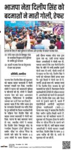 बेगूसराय में जीवन मौत से संघर्ष कर रहा जख्मी भाजपा नेता दिलीप सिंहखगड़िया. भाजपा नेता दिलीप सिंह को गोली मारने वाला मुख्य आरोपित बबलू कुमार को गिरफ्तार किया गया. मंगलवार को एसपी राकेश कुमार ने प्रेसवार्ता कर कहा कि गंगौर थाना क्षेत्र के लाभगांव निवासी दिलीप सिंह को गोली मारने के मामले में बबलू कुमार को गिरफ्तार किया गया है. उन्होंने बताया कि गंगौर थाना क्षेत्र के विशुनपुर के त्रिभुवन टोला में 28 नवंबर को जमीनी विवाद को लेकर दिलीप सिंह पिता स्व. महेन्द्र सिंह को गोली मार कर जख्मी कर दिया गया था. जख्मी दिलीप सिंह के बयान के आधार पर प्राथमिकी नामजद अभियुक्त बबलू महतो पिता विनोद महतो उर्फ बौना, विनोद महतो उर्फ बौना पिता स्व. भरतलाल महतो साकिन दक्षिणी भदास थाना-गंगौर के विरुद्ध गंगौर थाना कांड संख्या 353/25 दर्ज किया गया था. मामले के संज्ञान में आने के पश्चात पुलिस अधीक्षक द्वारा घटना को गंभीरता से लेते हुए घटना में संलिप्त अभियुक्तों के गिरफ्तारी के लिए अनुमंडल पुलिस पदाधिकारी, सदर-02 को आवश्यक दिशा-निर्देश दिया गया था. अपर पुलिस अधीक्षक सह अनुमंडल पुलिस पदाधिकारी सदर 02 के नेतृत्व में गंगौर थाना पुलिस द्वारा तकनीकी एवं मानवीय आसूचना के आधार पर इस कांड में संलिप्त मुख्य अभियुक्त बबलू कुमार को गंगौर थाना क्षेत्र के दक्षिणी भदास से गिरफ्तार किया. अन्य अभियुक्ति की गिरफ्तारी के लिए छापेमारी की जा रही है. एसपी ने बताया कि विनोद महतो उर्फ बौना फरार है.
