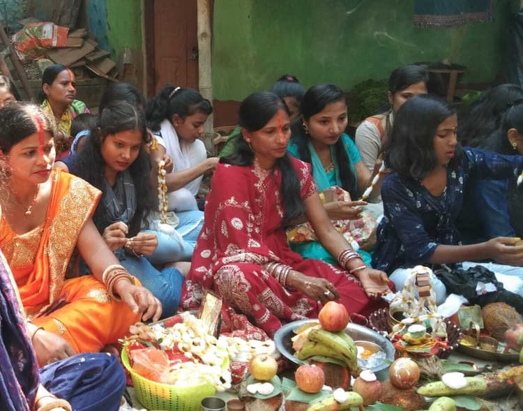 बहनों ने भाई के माथे पर तिलक लगाकर की लंबी आयु की कामना