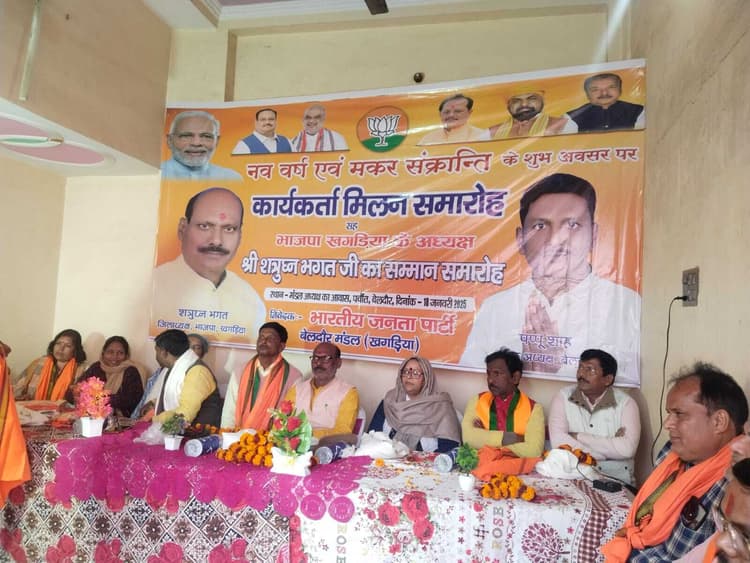 बेलदौर. प्रखंड के पचौत गांव में भाजपा बेलदौर मंडल द्वारा शनिवार को मिलन सह कार्यकर्ता सम्मान समारोह का आयोजन किया गया. वही बेलदौर मंडल अध्यक्ष पप्पू साह के अध्यक्षता में आयोजित उक्त समारोह में पार्टी के जिलाध्यक्ष शत्रुघ्न भगत का अभिनंदन मंडल अध्यक्ष ने अंगवस्त्र एवं फूलमाला पहना कर किया. इसके अलावे पार्टी के जिला, मंडल एवं शक्ति केंद्र के प्रमुख को भी अंगवस्त्र एवं फूलमाला पहना कर सम्मानित किया गया. उक्त समारोह को संबोधित करते हुए वक्ताओं ने भाजपा को विश्व का सबसे बड़ा राजनीतिक दल बताते हुए कहा कि पार्टी में कार्यकर्ताओं को जितना तब्बज्जो दिया जाता है, उतना सम्मान अन्य राजनीतिक दल में नहीं मिलता है. वही वक्ताओं ने अपने अपने संबोधन में पार्टी के मजबूती पर चर्चा करते हुए कहा कि आने वाला समय भी पार्टी कार्यकर्ताओं का ही, जिसमें वे अपने प्रतिभा के बल पर नई ऊंचाइयों को छू सकते हैं. सम्मान समारोह को पार्टी के पूर्व विधायिका चंद्रमुखी देवी, पूर्व जिप सदस्य जयकृष्ण सिंह, जिलाध्यक्ष शत्रुघ्न भगत, पूर्व जिलाध्यक्ष सुनील सिंह, नगर पंचायत बेलदौर के चेयरमैन ममता कुमारी, महिला मोर्चा के क्षेत्रीय प्रभारी सरला सिंह, प्रीति प्रिया, लक्ष्मी देवी, मधु देवी, इंजीनियर धर्मेन्द्र यादव, जिला महामंत्री इंदुभूषण कुशवाहा, प्रवक्ता अरविंद कुमार सिंह, जितेन्द्र यादव आदि ने भी संबोधित किया. उक्त सम्मान समारोह का समापन पार्टी के बेलदौर विधान सभा प्रभारी रंजन कुमार राज ने समापन भाषण देकर की. मौके पर दर्जनों पार्टी नेता एवं कार्यकर्ता मौजूद थे.
