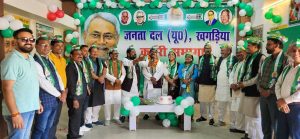 जदयू कार्यकर्ताओं ने उत्साह, उमंग और खुशी का इजहार एक दूसरे को केक और लड्डू खिलाकर किया