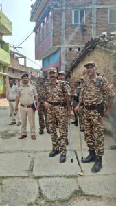 केंद्रीय बल और स्थानीय पुलिस ने बाजार में निकाला फ्लैग मार्च